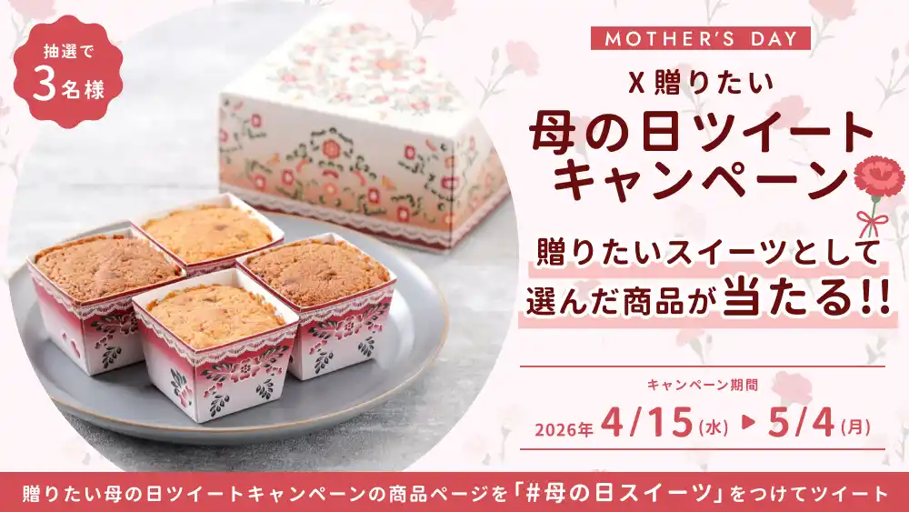 さらに、スイーツモールで贈りたいお菓子を選び、Xにて投稿して下さった方へ、抽選で投稿したお菓子を無償でプレゼントいたします。 |