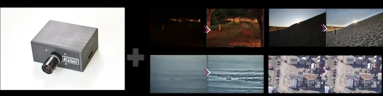 東京計器は、防衛事業において近年新たな脅威となった無人機への対処製品の開発に注力しており、その一環として、無人機を探知・識別するAIカメラの開発に取り組んでいます。ロジック・アンド・デザインの画像鮮明化技術および復元高解像度化技術との融合により、暗所、霧、逆光、解像度不足などの環境下における探知・識別能力の向上を目指しております。 |