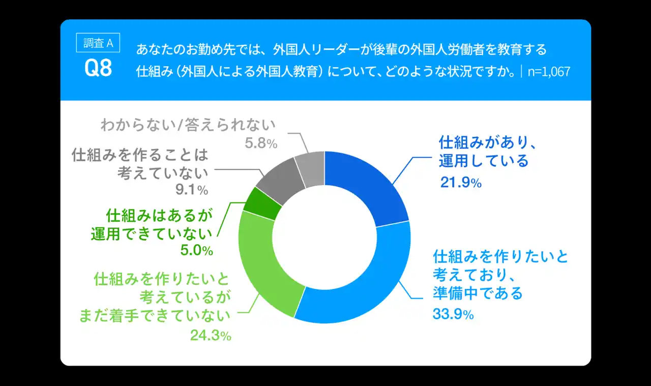 外国人リーダーが後輩を教育する仕組みを運用できている企業はわずか21.9% |
