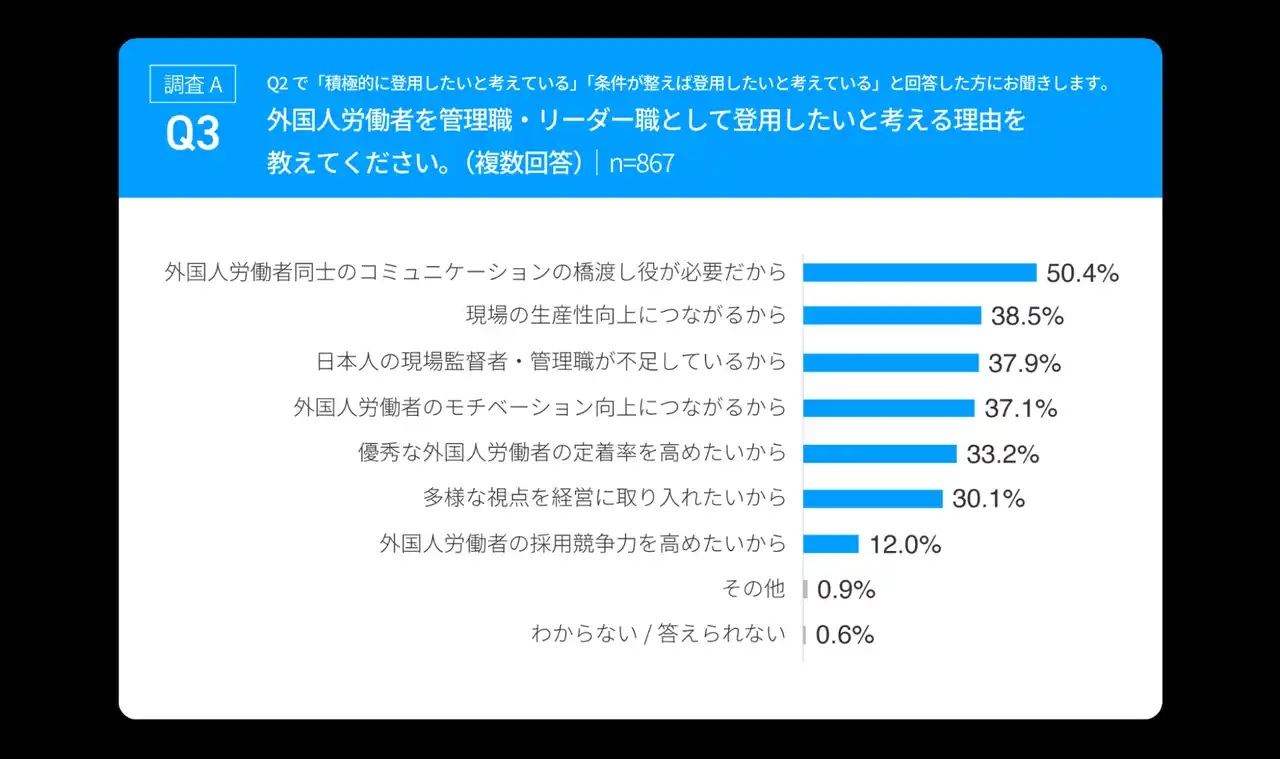 81.3%が外国人労働者の管理職・リーダー職への登用に前向き |