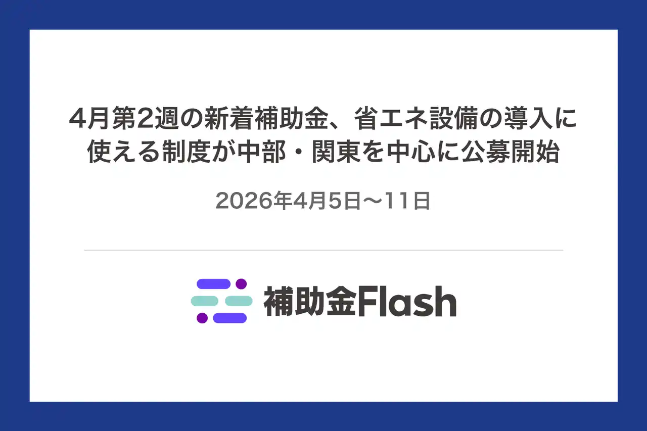 | 4月第2週は省エネ対応の設備更新を検討している事業者、エネルギーコスト削減に取り組む中小企業、再エネ設備の導入を進めたい工場・店舗事業者に関連する支援が確認されました。 | ||||||||||||||||