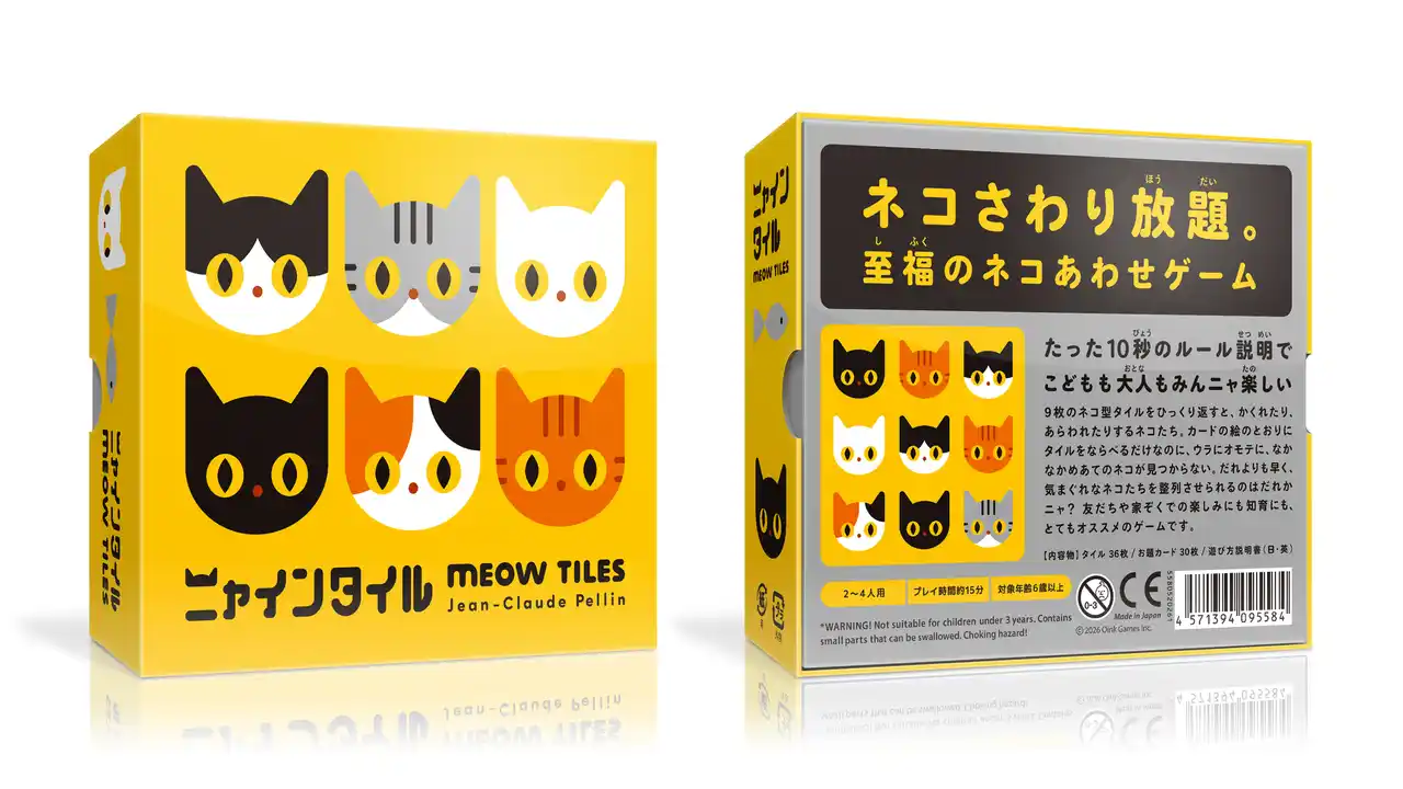 オインクゲームズは新作ボードゲーム『ニャインタイル』を5月23日(土)・24日(日)のゲームマーケット2026春で発売します。一般販売開始日は5月29日(金)です。シリーズ発行部数43万部を突破した『ナインタイル』のネコバージョン。何度でも愛でながら遊びたくなる作品です。 |