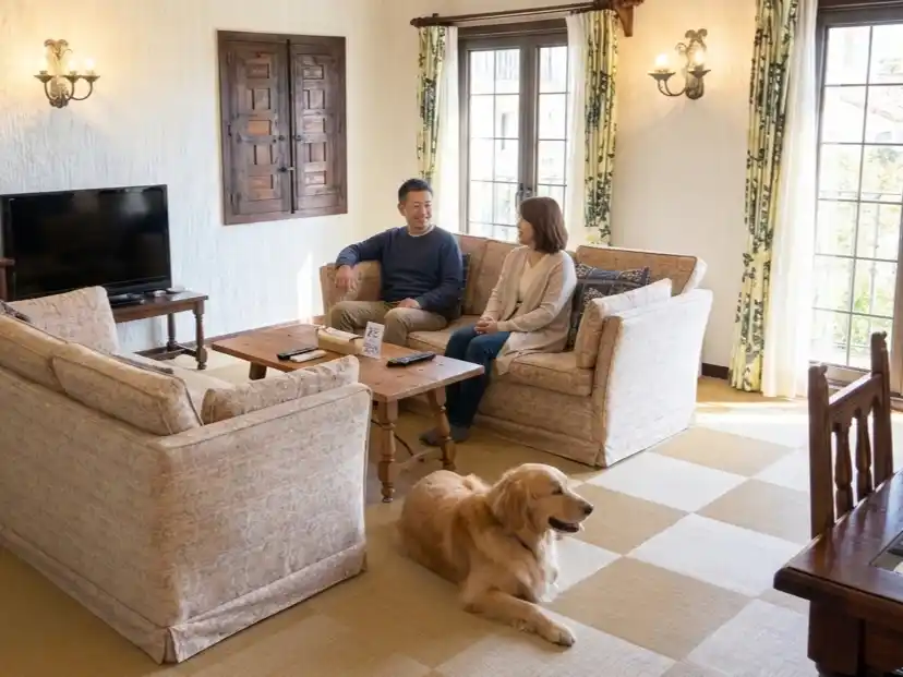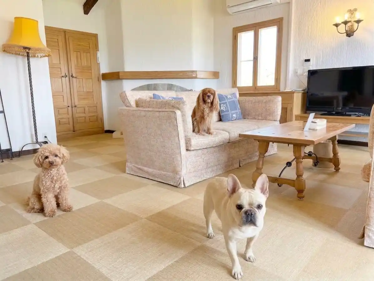 従来の頭数制限を見直し、小型犬・中型犬は最大3頭、大型犬は最大2頭まで同時宿泊が可能に。ご家族全員でのご旅行を実現します。 |