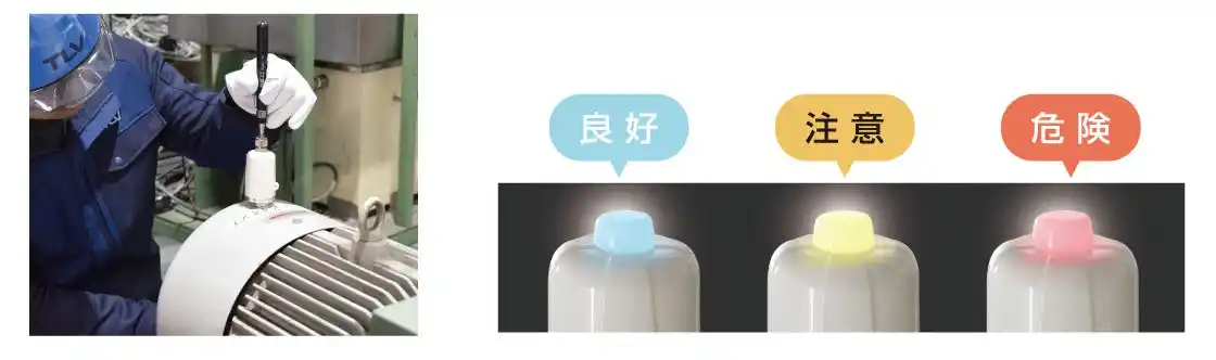 回転機設備の状態を、ライトの点灯色でわかりやすく表示する振動チェッカーです。