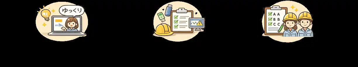 ミニクイズで知識定着 理解確認+反復練習で「現場で迷わない」状態を作る |