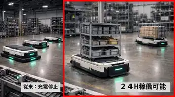 | ・安全性向上(ケーブル不要による) ⇒ 食品工場・クリーンルーム・手術室などの機器給電。 | |||