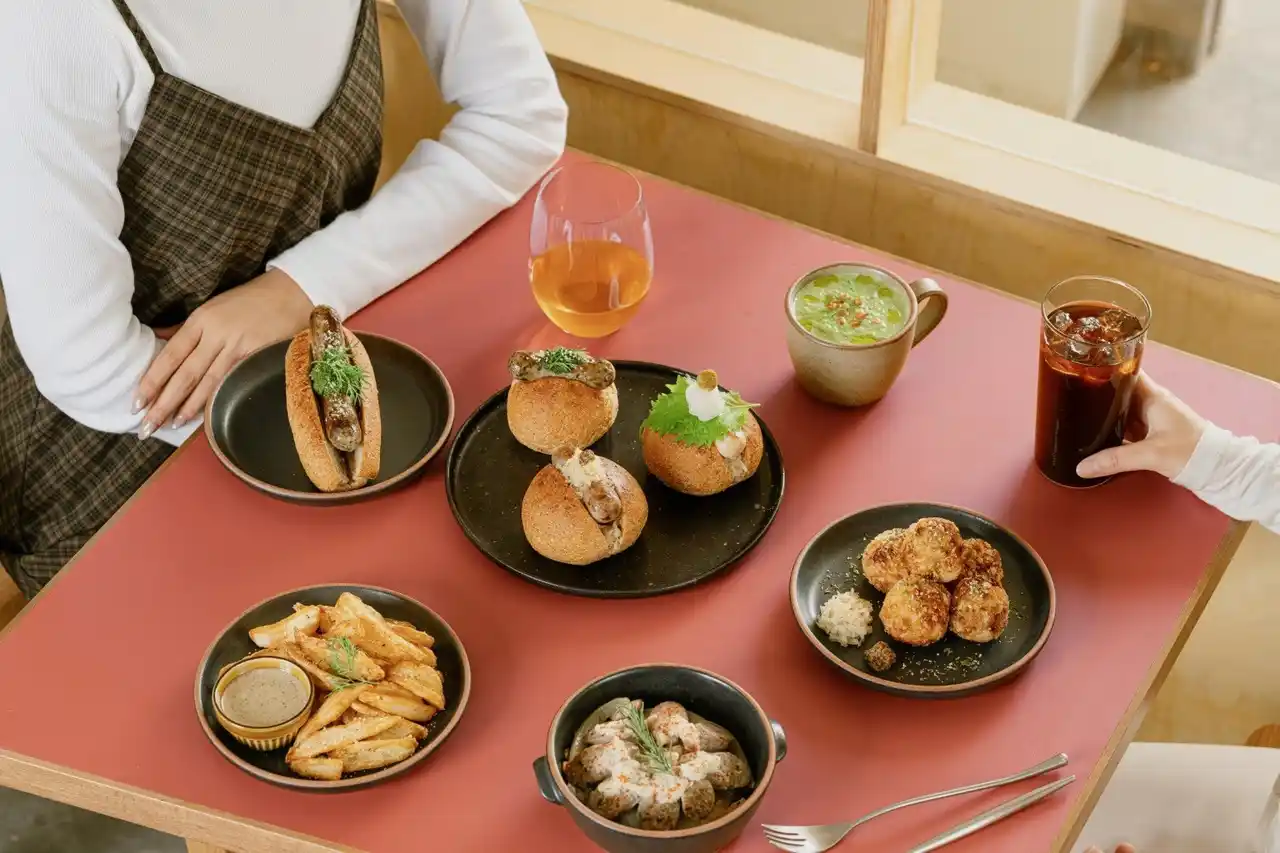 夜はアートの香り漂う、秘密の空間へと姿を変えます。「ソーセージと野菜のスキレット」「揚げザワークラウトボール」などの自家製メニューや、終日楽しめる「EMMA'sブランチ」を、自然派ワインや台湾ティースピリッツとのペアリングで味わえます。 |