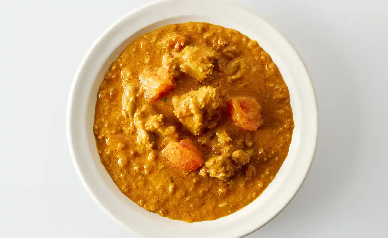 バーミキュラの無水調理で、鶏肉と野菜の旨みをぎゅっと凝縮。トマトの濃厚なコクとスパイスの芳醇な香りが重なり合い、一口ごとに奥行きのある味わいが広がる仕上がりに。ごろっとした鶏肉の贅沢な食べ応えも抜群です。火にかけるだけの手間いらず、じっくり煮込んだような本格的な一皿を気軽にお楽しみいただけます。 |