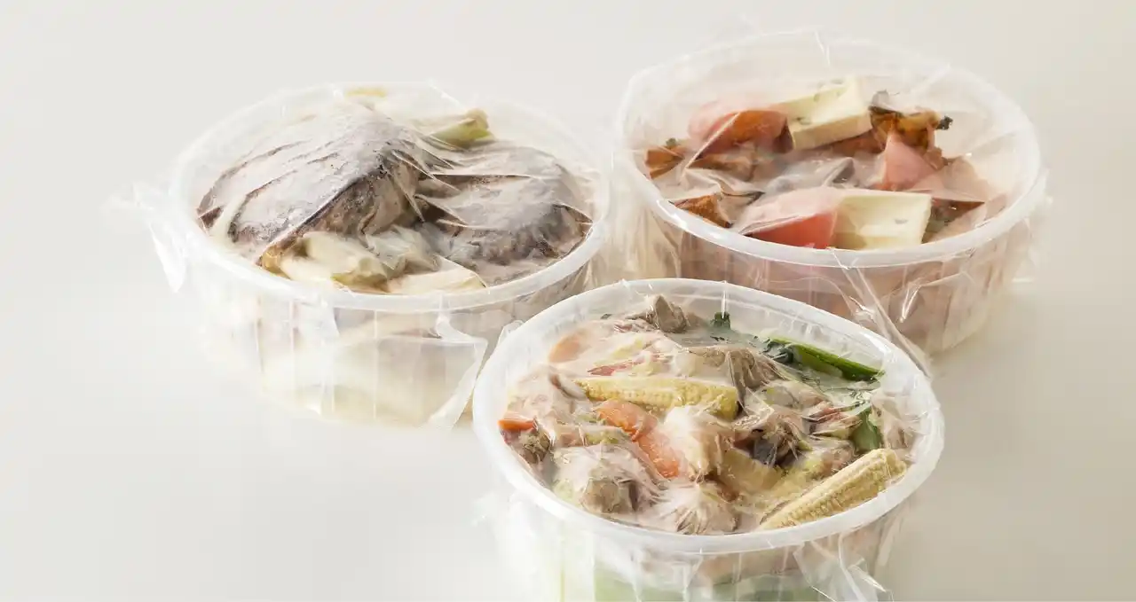 (4)下ごしらえ後すぐに真空圧縮。素材の旨みや風味を逃さずお届け。