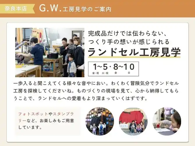 ■ ランドセル工房見学(5月1日~5日・8日~10日) |
