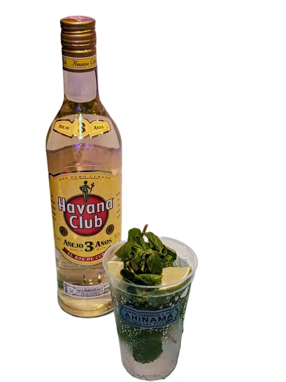 フレッシュなキューバミント「イエルバブエナ」と優しい甘さの「きび砂糖」を使用したモヒート(ノンアル有)は、さっぱり爽やか |
