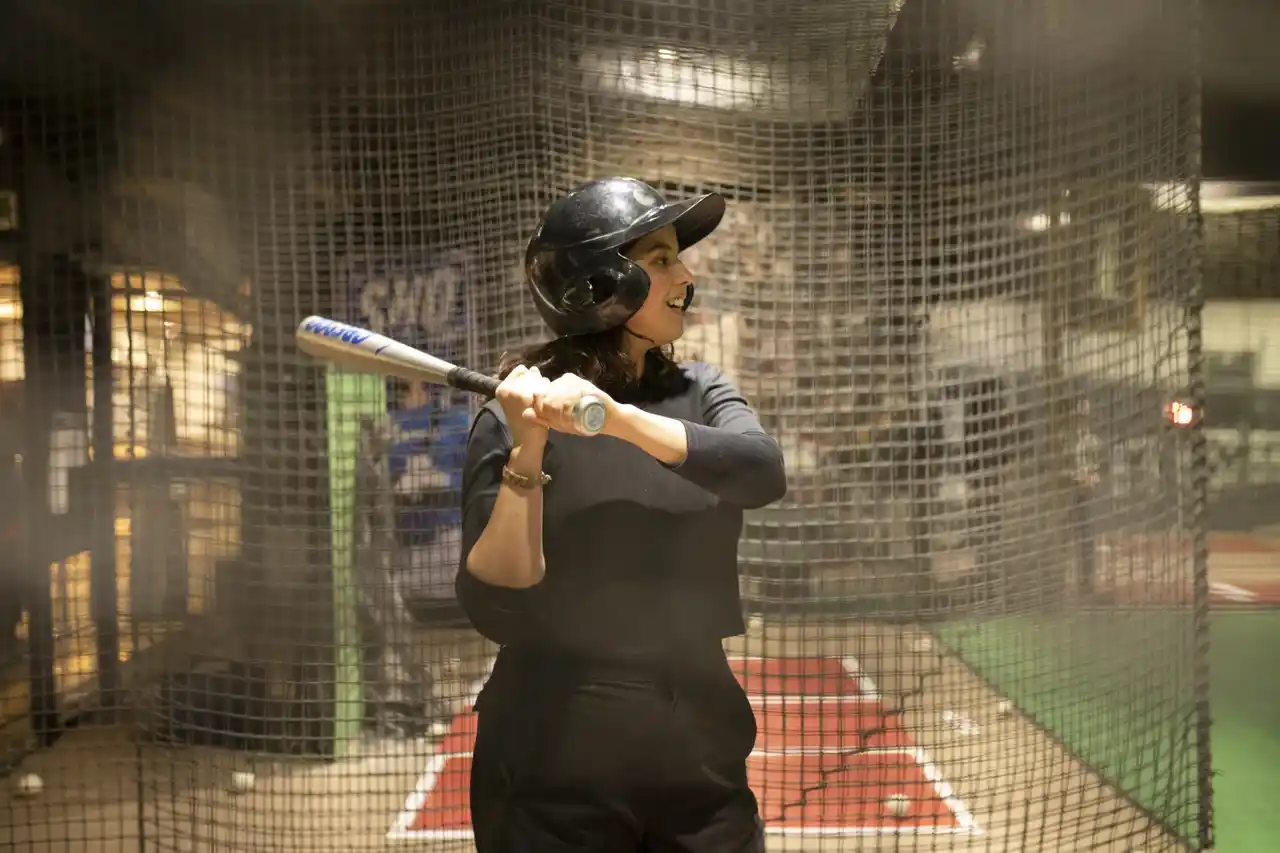 東京ドームシティ内の屋内型スポーツ施設 スポドリ!にて、投手映像が映し出されるスクリーン式バッティングコーナーを体験 |