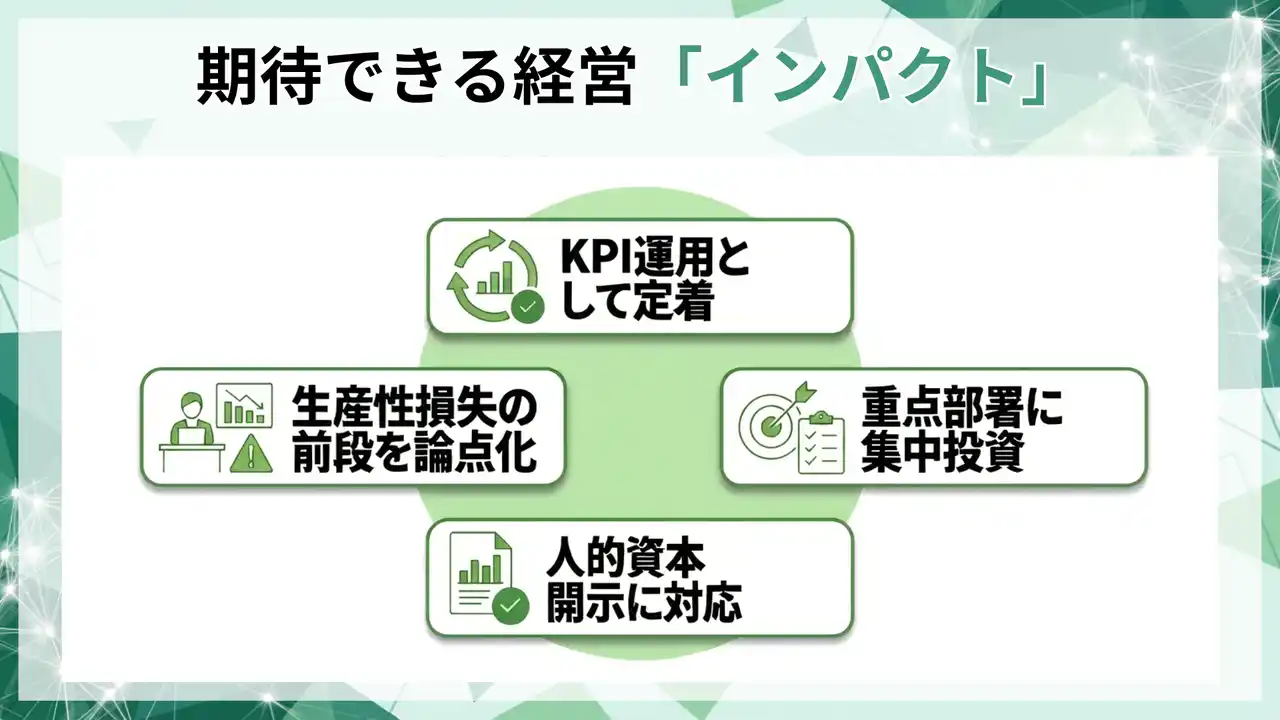 人的資本開示だけでなく、健康経営や関連施策の説明にも接続しやすい形で提示 |