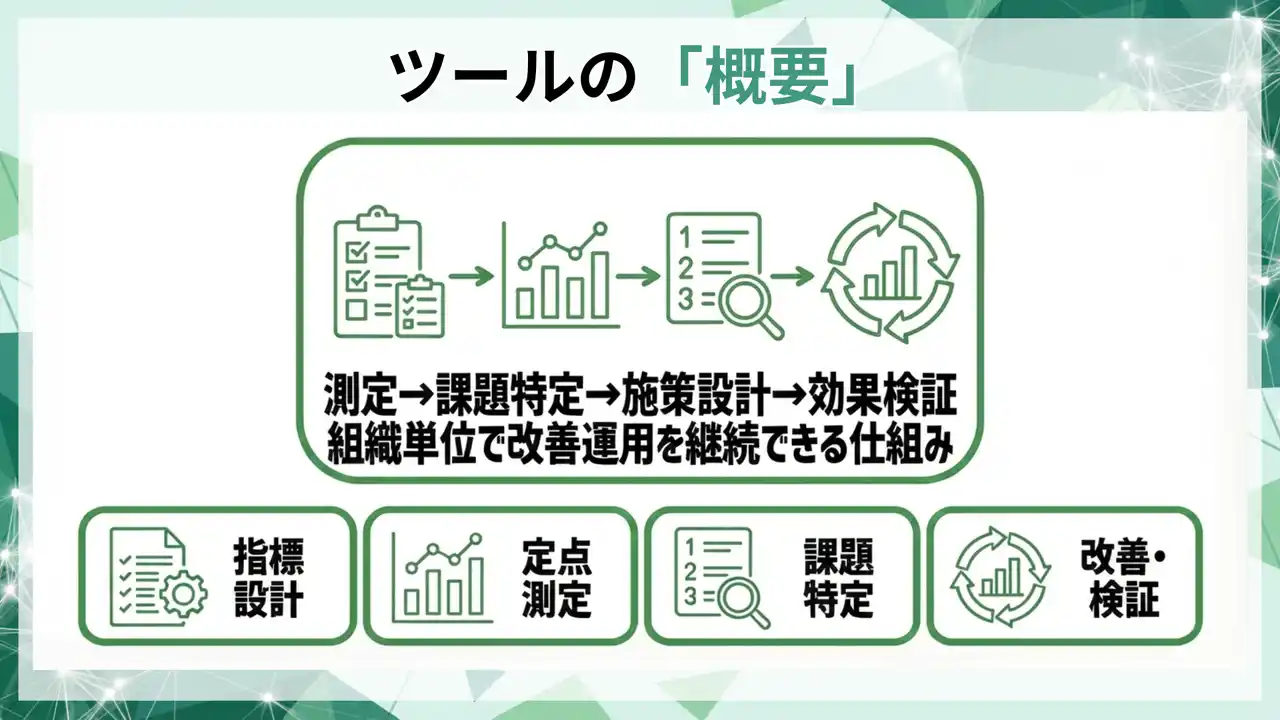 ツール概要(測定→課題特定→施策設計→効果検証) |