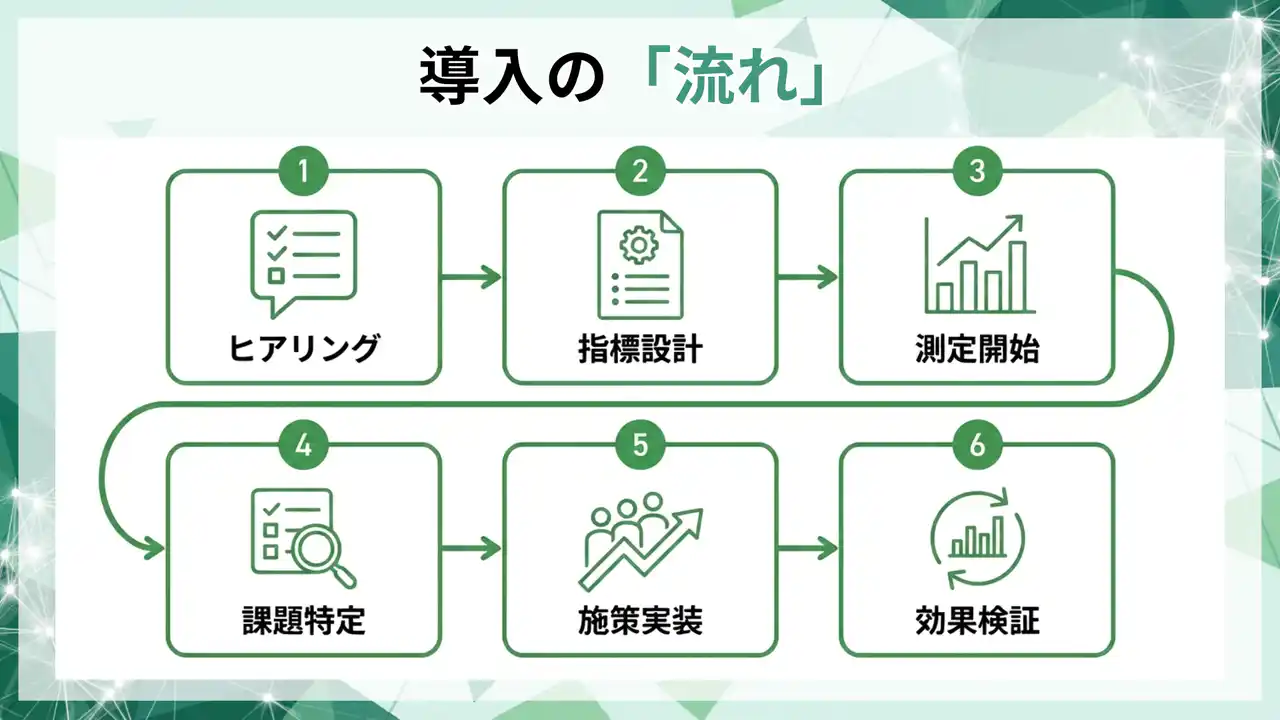 エンゲージメントをKPI運用として定着 測定で終わらせず、レビュー頻度と打ち手更新まで運用化します。 |