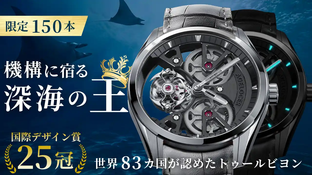 | 2026年4月15日、ハマダファクトリー(代表:浜田 圭祐)が手掛けるサービス「LUNERA(ルネラ)」は、国際デザイン賞25冠を誇る高級機械式時計ブランド「AGELOCER(エイジローサー)」の新作モデル「フリースプラングバランス・マンタ・トゥールビヨンウォッチ」を、“応援購入サービス”Makuakeにて日本国内で初めて販売を開始いたします。 | |||
