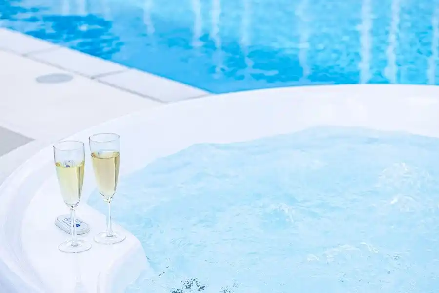 2.開放感溢れる中庭のプライベートプールと屋外温水ジャグジー |