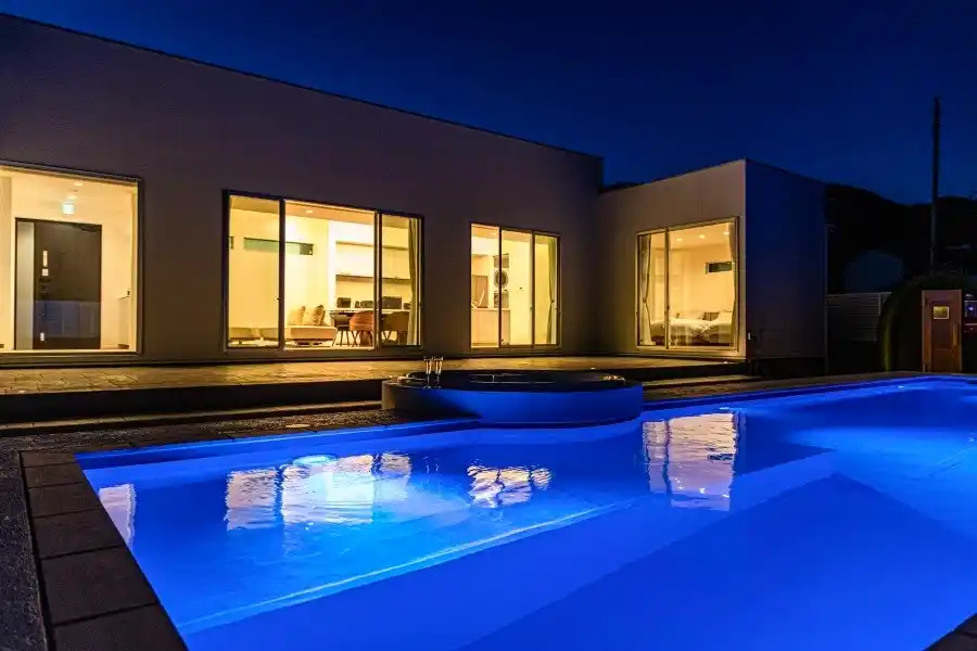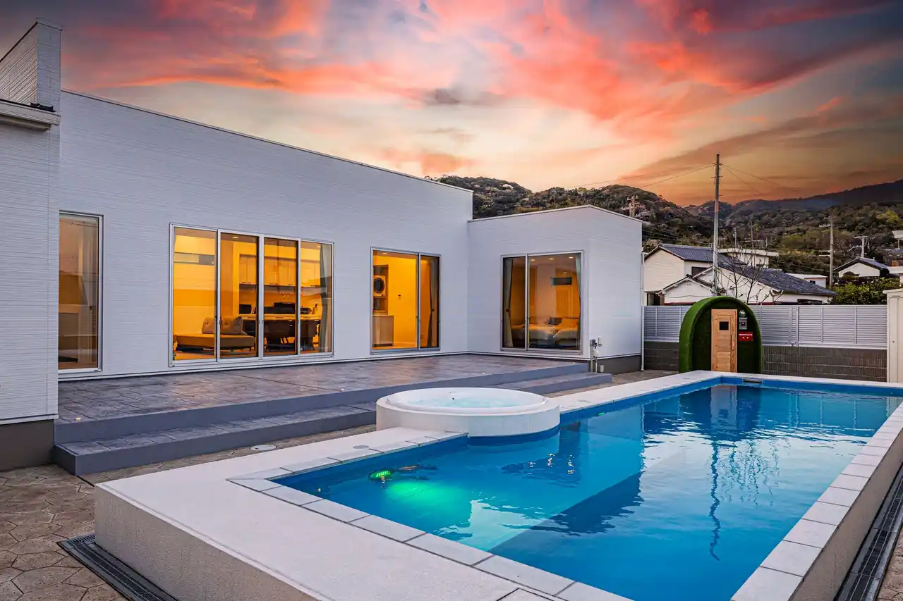 広々としたプライベートプールとジャグジーを備えた淡路島の一棟貸しヴィラ |