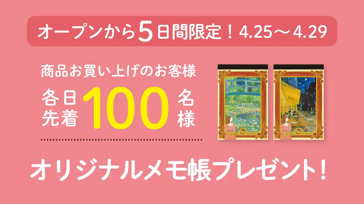 サブレミシェル大丸東京店で商品お買い上げのお客様各日先着100名様にオリジナルメモ帳を1個プレゼント。 |