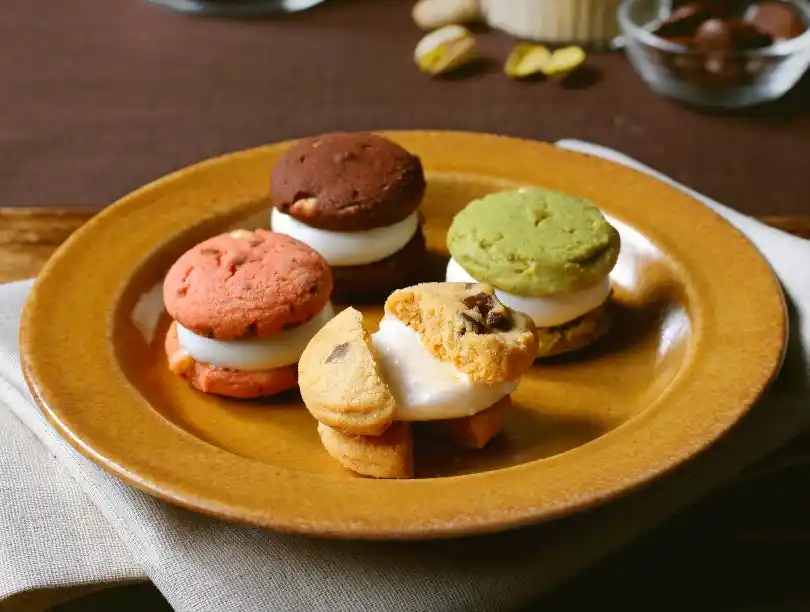 チョコチップクッキーでマシュマロをサンドした、楽しい食感のサンドクッキー。 クセになる2つの食感をお楽しみください。 |