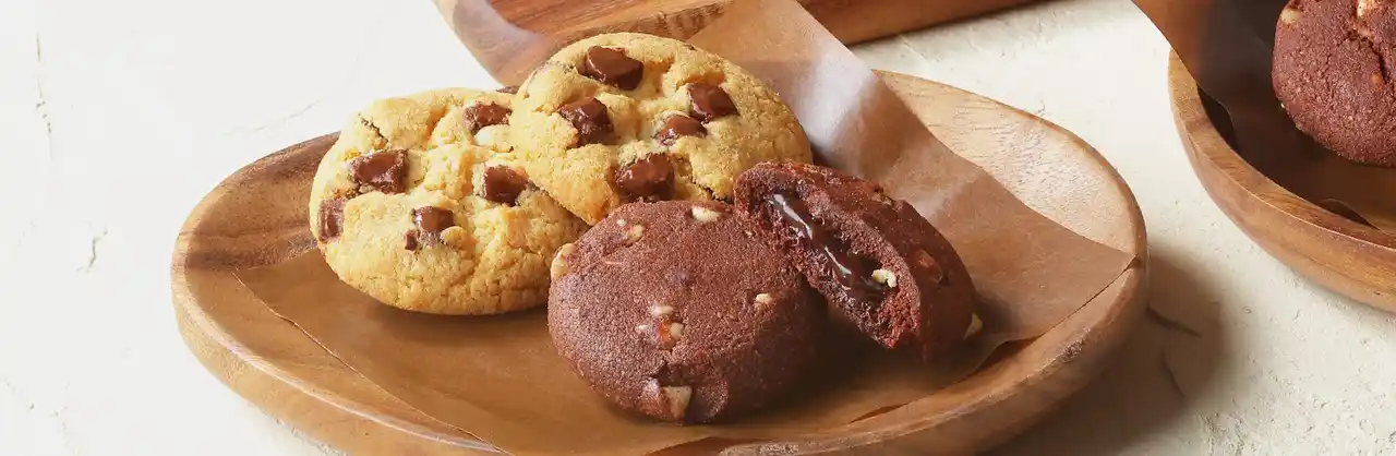 定番のチョコチップクッキーは20種類以上。 味、形、食感がそれぞれ違い、さまざまなコンビネーションがお楽しみいただけます。 |