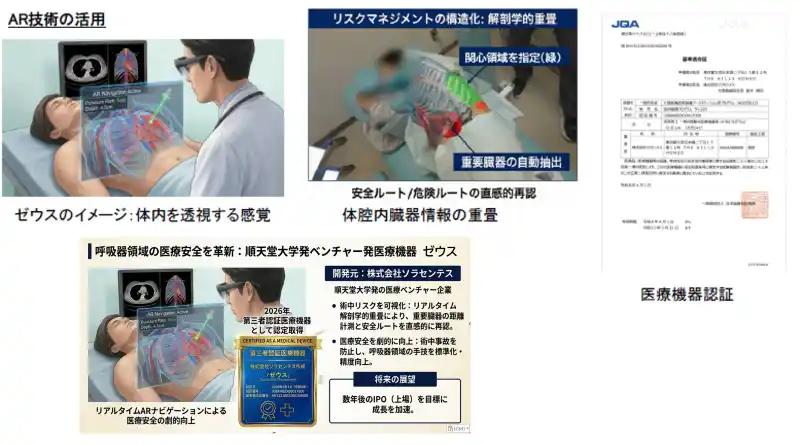 株式会社クリーク・アンド・リバー社(以下C&R社)が出資する株式会社ソラセンテスの開発する拡張現実技術(AR)で医療安全を確保する革新的な医療機器 医用画像プログラム「TH-ZEY(ゼウス)」が、4月1日(水)に一般財団法人日本品質保証機構(JQA)より正式に医療機器認証を受けました。 医療機器としての認可を受けたことで、これにより保険診療における加算算定の道が拓け、多くの医療機関に導入される道筋が整いました。 ■ ソラセンテス設立背景とAR技術活用方法 順天堂大学附属順天堂医院呼吸器外科教授でもある鈴木健司氏は、胸腔ドレナージの安全性を高めるために、拡張現実の技術を医療に応用することを目指してきました。寄付金を原資としてプロジェクトを進めてきましたが、実用化に向けてさらなる事業推進のために2023年2月に株式会社を設立しております。 「不可視」の歴史に、終止符を。 胸腔ドレナージは、古代ギリシャのヒポクラテスが史上初めて行ったとされる、外科診療において最も基本的かつ不可欠な手技の一つです。しかし、その誕生から二千数百年を経た現代においても、胸腔ドレナージに伴う重篤な事故や死亡事例は後を絶たず、厚生労働省事故調査委員会からも度重なる警鐘が鳴らされています。 なぜ、現代医療をもってしてもこの状況を打破できないのか。 それは、空気が介在する胸部において、超音波装置という「目」が機能し得ないという物理的限界があったからです。ソラセンテスは、この「不可視」のリスクを克服すべく、拡張現実(AR)の技術を臨床現場へ投入しました。患者の身体に直接CT画像をオーバーレイし、体内を「透視」するようにガイドする。この「TH-ZEY(ゼウス)」がもたらす革新は、医療安全の基準を塗り替え、一人でも多くの命を守るための、必然の進化です。 現状の手法と課題 穿刺器具の先端を常に観察しながら処置を行うことはできないため、臓器損傷をきたすリスクが常に伴い、死亡事故が頻発しています。 ■ 鈴木健司氏プロフィール |