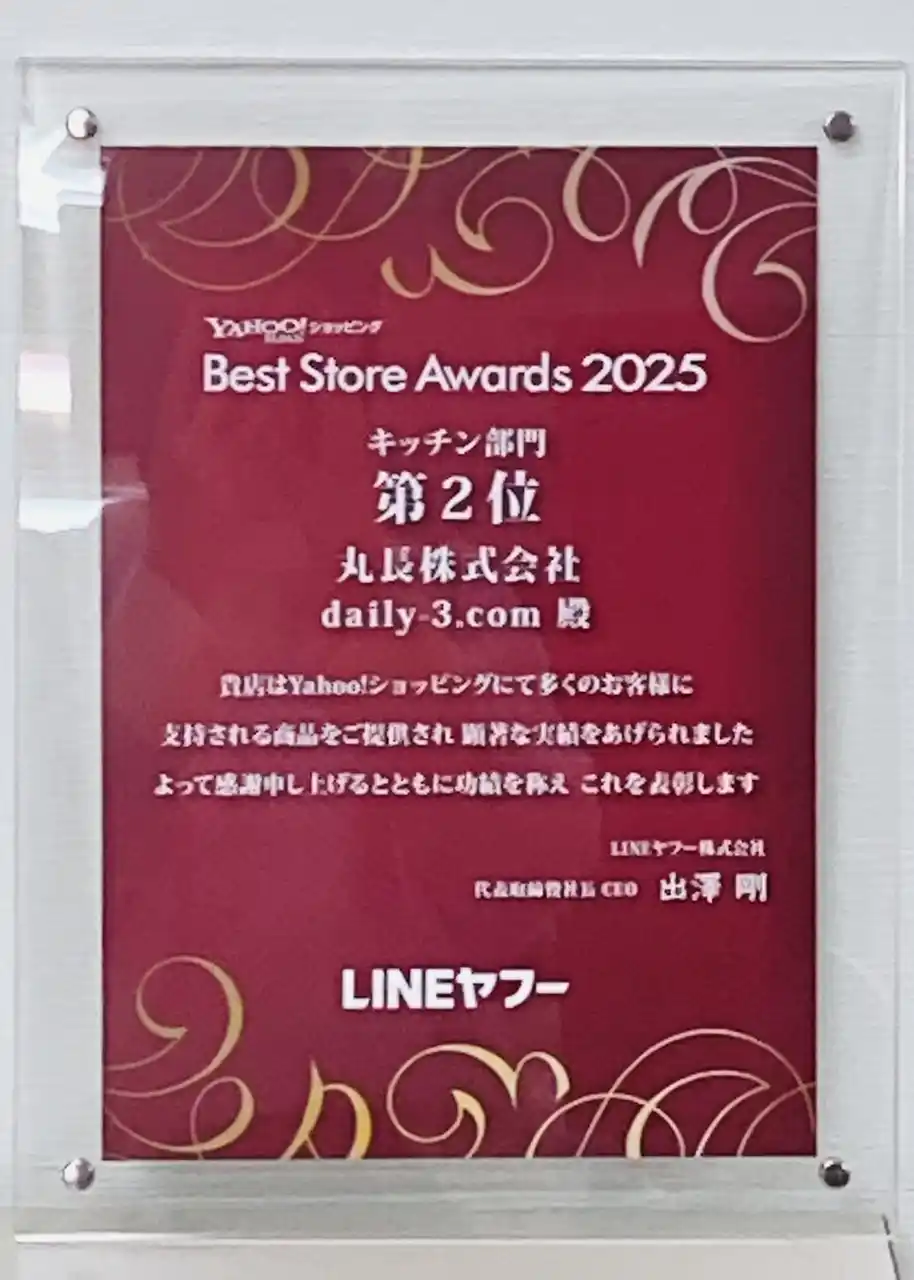 株式会社ベルーナ(本社:埼玉県上尾市、代表:安野 清)の子会社である丸長株式会社が運営するYahoo!ショッピング内のオンラインストア「daily-3.com」は、LINEヤフー株式会社が主催する「Yahoo!ショッピング Best Store Awards 2025」において、生活カテゴリ キッチン部門で第2位を受賞しました。 |