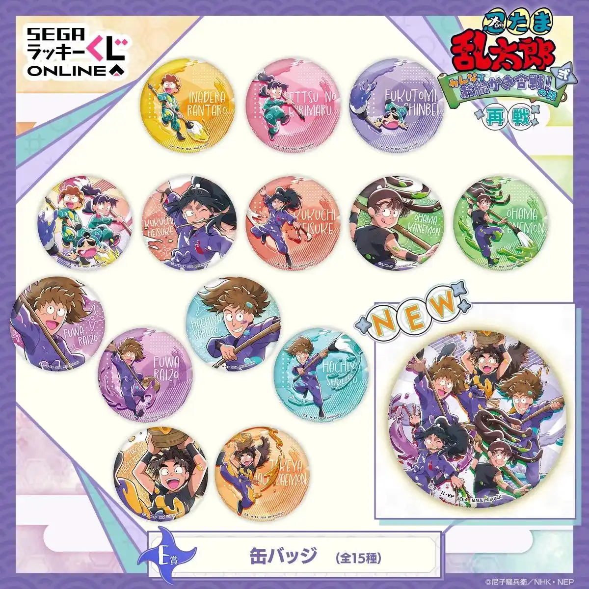 本くじは、2024年4月に発売されたセガ ラッキーくじオンライン「忍たま乱太郎 みんなでお絵かき合戦!の段 弐」の一部賞品のラインナップをリニューアルして販売されるオンラインくじです。前回も好評いただきました「アクリルスタンド」や「マルチクロス」、「クリアバッグ」のほか、新規デザインを含む「缶バッジ」や新規賞品である「マフラータオル」などラインナップが追加されリニューアルしています。 |