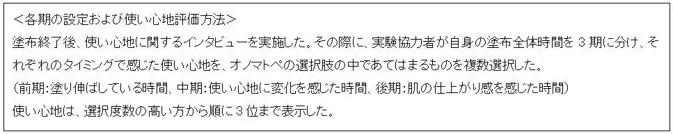| ◆ 塗布過程のうち、「使い心地の変化」が感性評価を左右する重要因子であることを発見 | |||