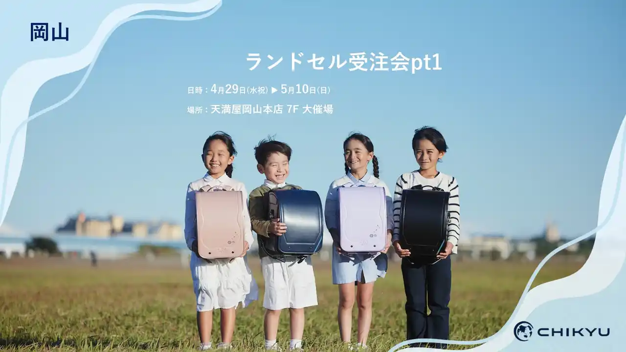 | ランドセルの企画・販売を行うCHIKYU株式会社(東京都港区、代表取締役:辻谷安央)は、岡山・天満屋岡山本店での「ランドセル受注会pt1」に参加いたします。 | |||||||||
