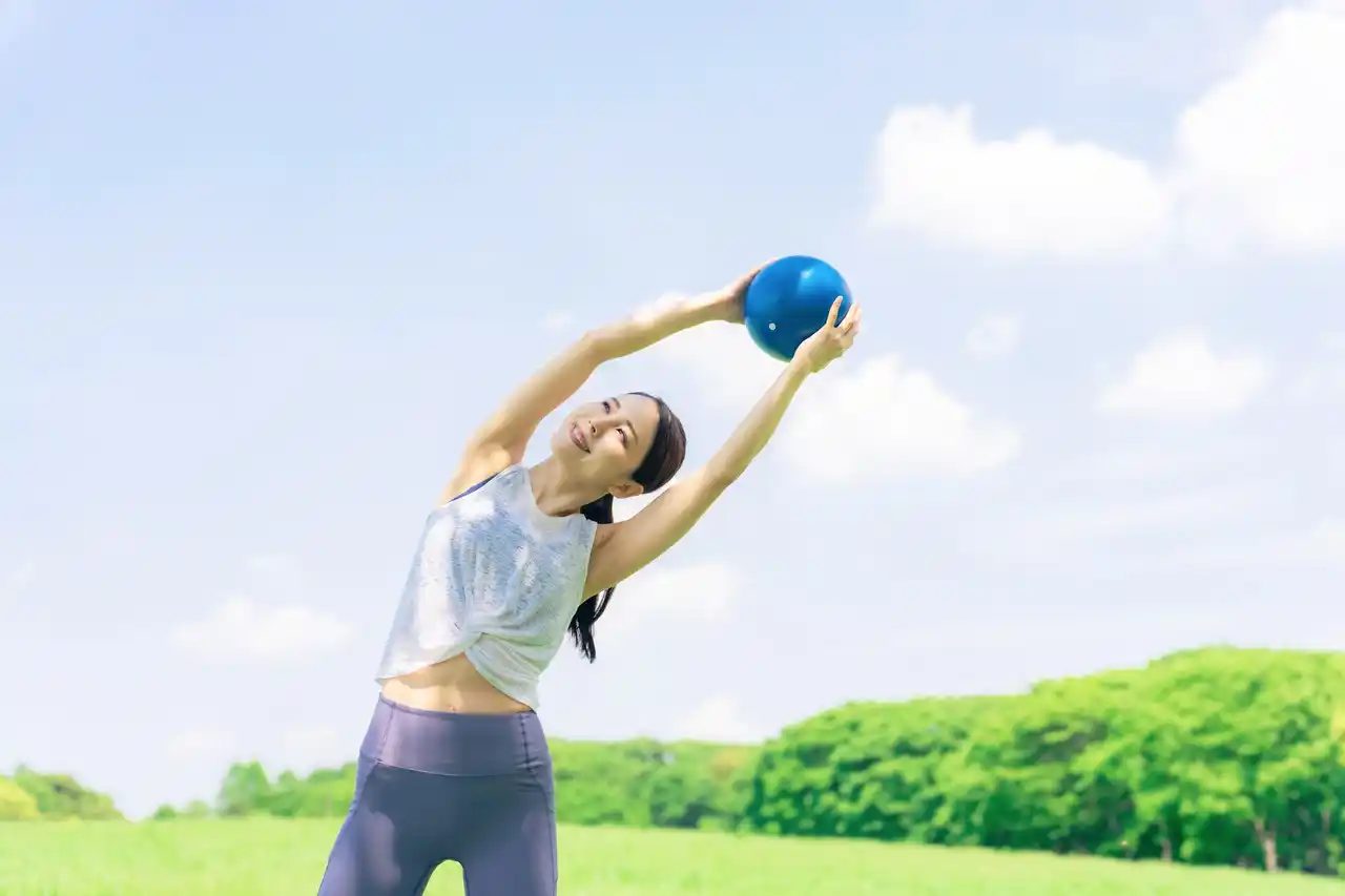 場所:バランスボール×ヨガ:ホテルガーデン |