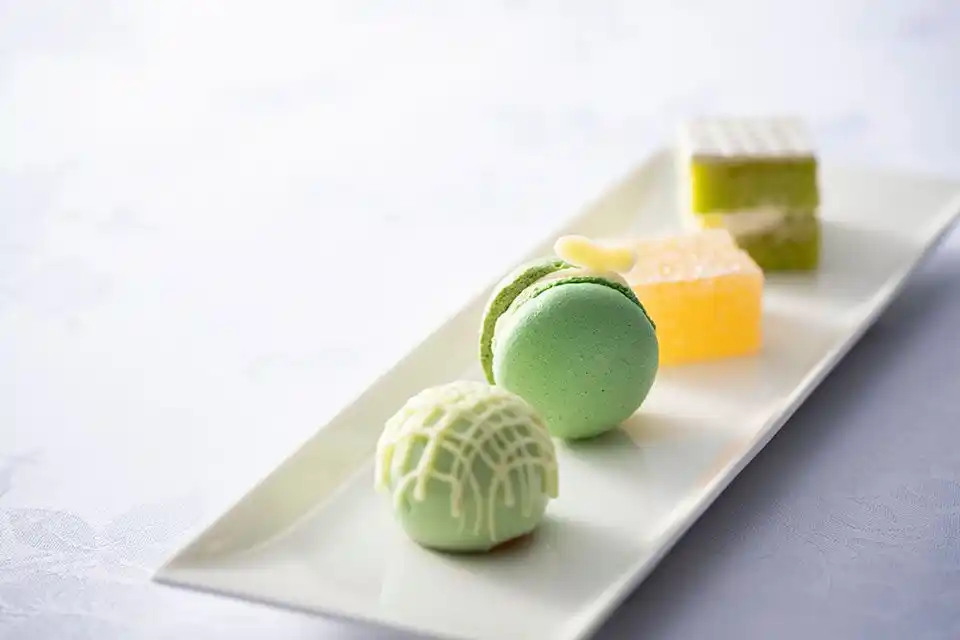 爽やかな緑に包まれた、メロン香る初夏のひとくちスイーツ。 |