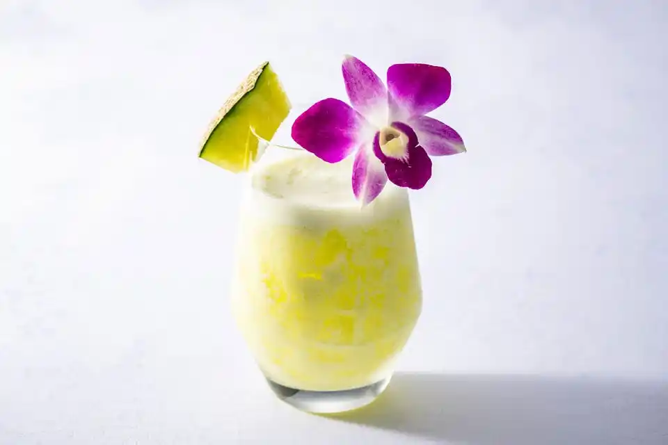 ココナッツとパイナップルのトロピカルな味わいが特徴のピニャコラーダをベースに、メロンリキュールを加えました。一足早く、夏の訪れを感じられる一杯。 |