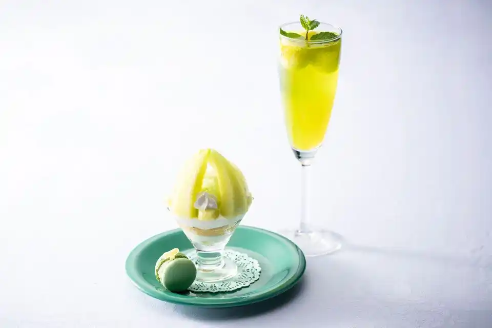 BAR&LOUNGE「MIDO(ミドウ)」では、みずみずしいメロンを使用した爽やかで夏らしい2種類のカクテルをご用意。「Melon Mimosa」は、オレンジとスパークリングワインにメロンを合わせた、軽やかな味わいの一杯。「Melon Colada」は、トロピカルな味わいにメロンの香りが重なる、夏の訪れを感じられるカクテルです。デザートには、メロンのソルベにヨーグルトのクリームシャンティを重ね、メロンをふんだんに使用した期間限定のパフェをご用意。メロンのカクテルとともに、初夏のひとときをお楽しみください。 |