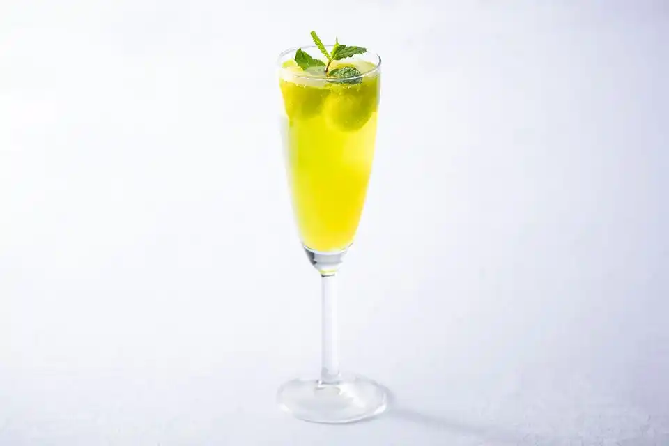 オレンジジュースとスパークリングワインで知られるミモザをベースに、メロンリキュールとフレッシュライムを加えたアレンジカクテル。丸くくり抜いたメロンを浮かべた、爽やかな一杯。 |