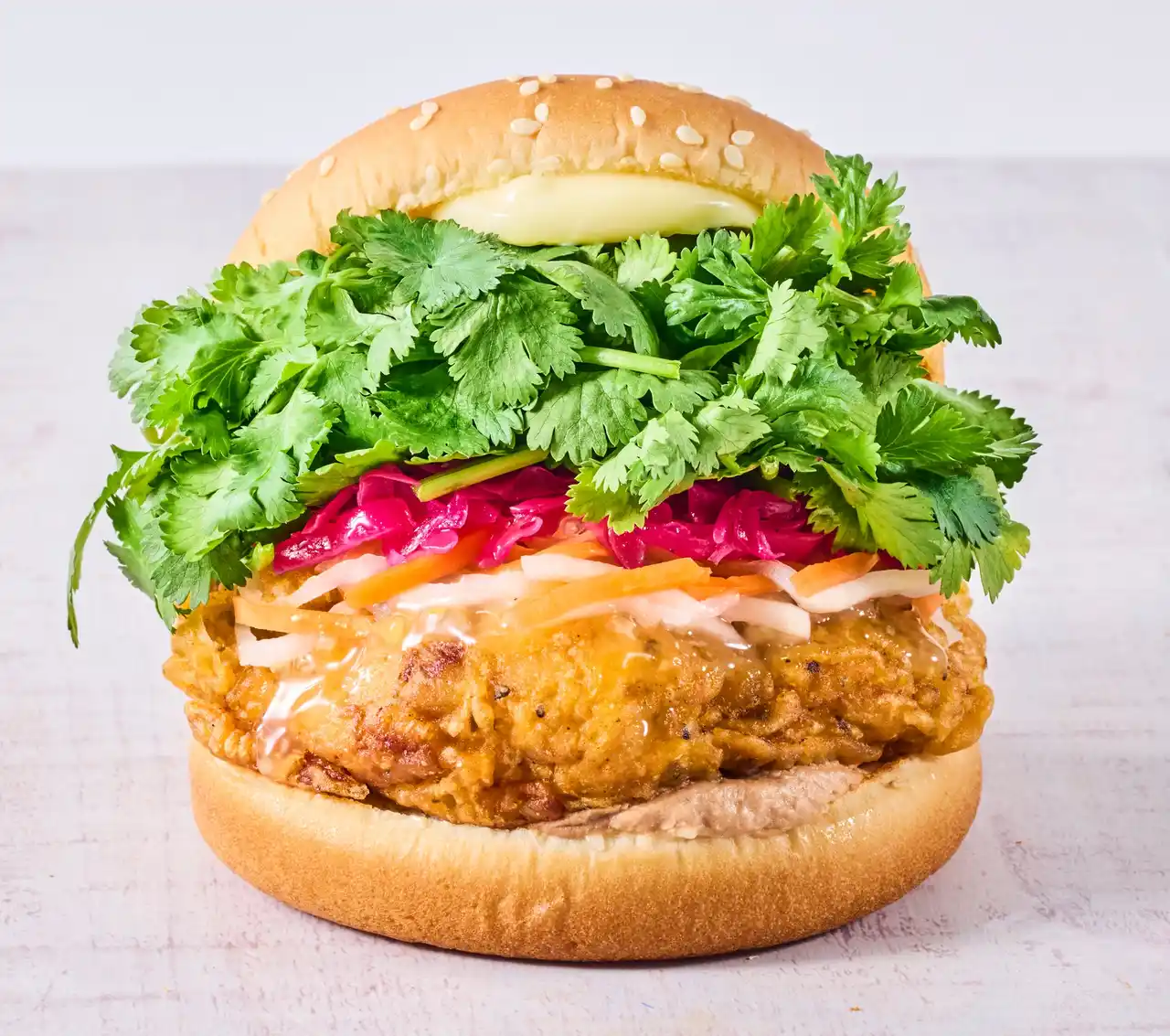 2026年4月22日(水)より、「パクチーチキンバーガー カオマンガイ」と「パクチーチキンバーガー バインミー」を期間限定で発売いたします。