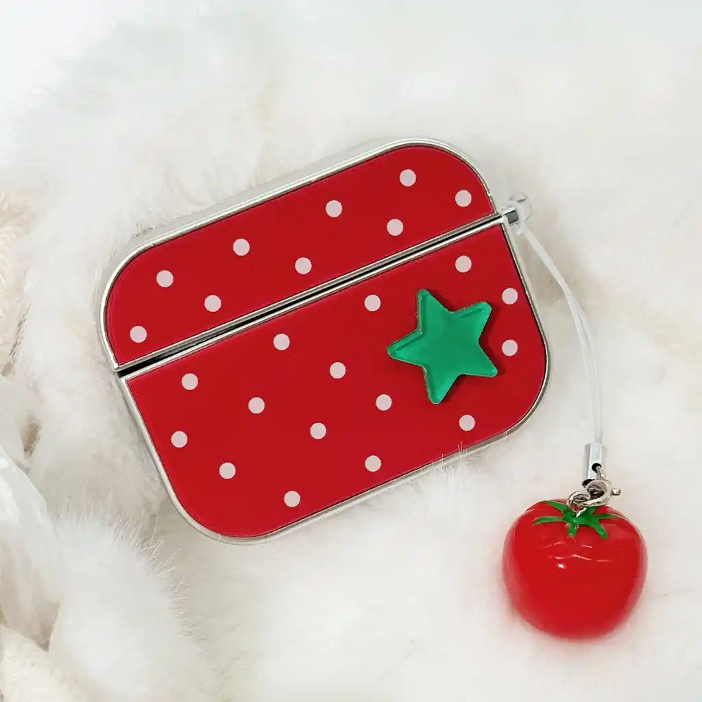 トマトモチーフのケースとぷっくりチャームが遊び心あふれるデザイン |