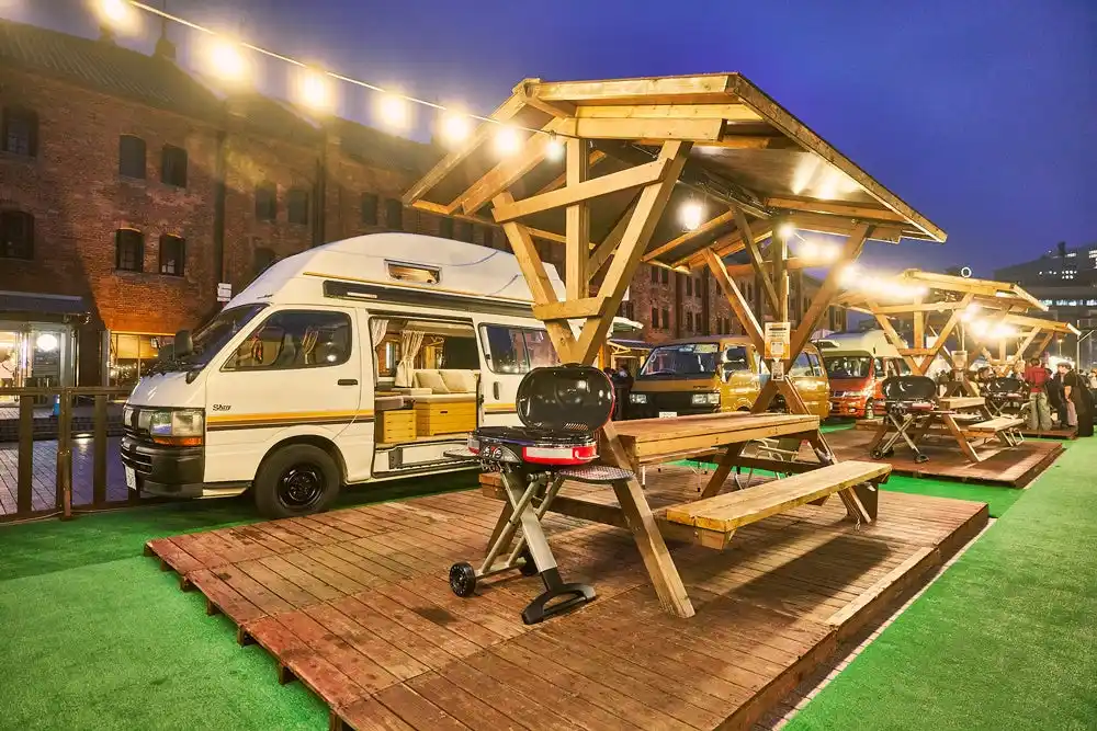 歴史的建造物でもある横浜赤レンガ倉庫とみなとみらいの海を臨めるロケーションで“デイキャンプ”をお楽しみいただけます。今年はバーベキューやキャンピングカーに加え、デイキャンプをより盛り上げる体験として、コールマンの本格的なアウトドアグッズでつくる“キャンプ飯”を味わっていただけます。さらにエリア区画数も昨年の8区画から10区画へ拡大し、より多くの方にお楽しみいただける空間となっています。 |