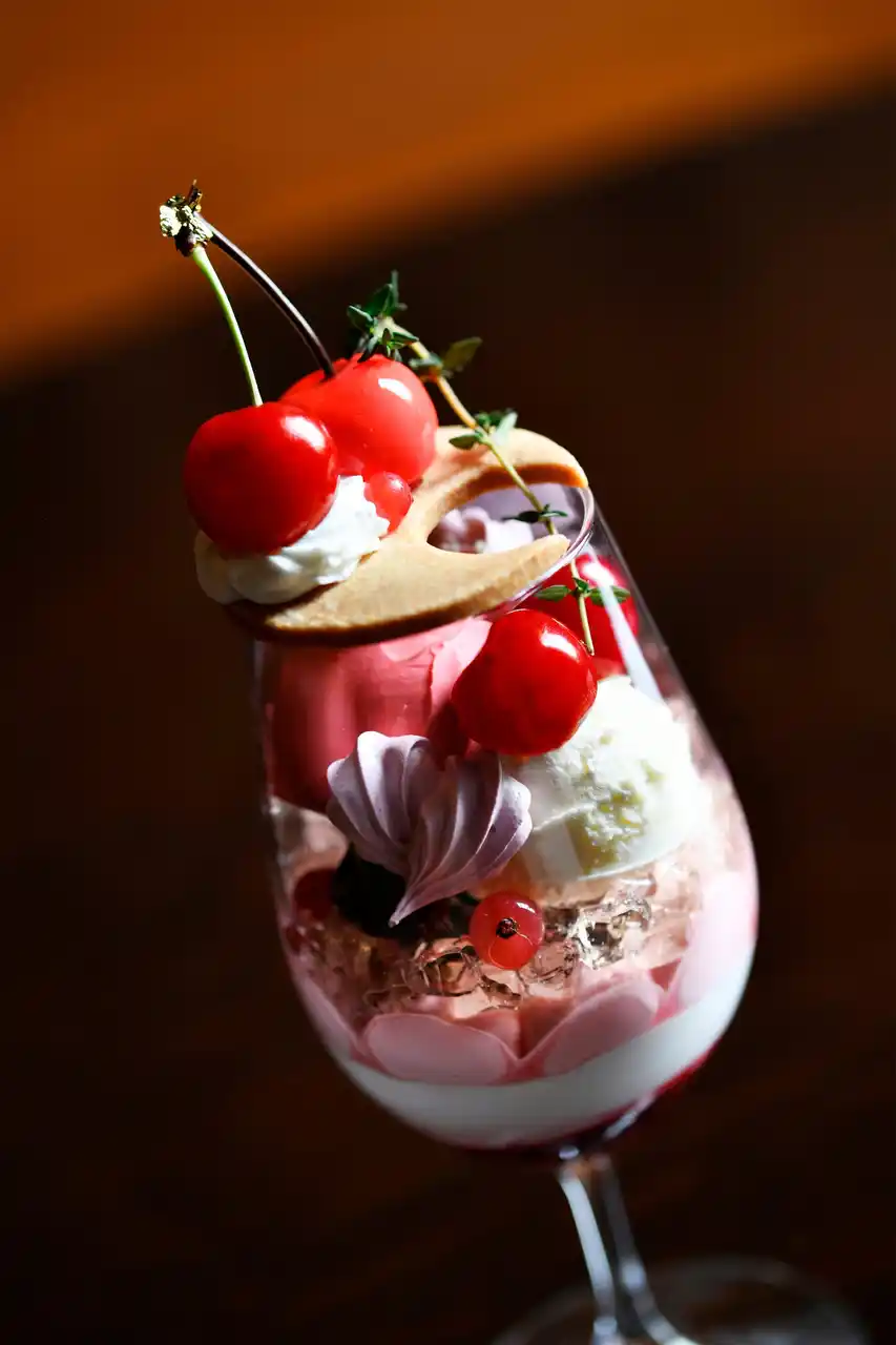 | 価格 さくらんぼパフェ ¥3,100(税金・サービス料込) | |||||||||