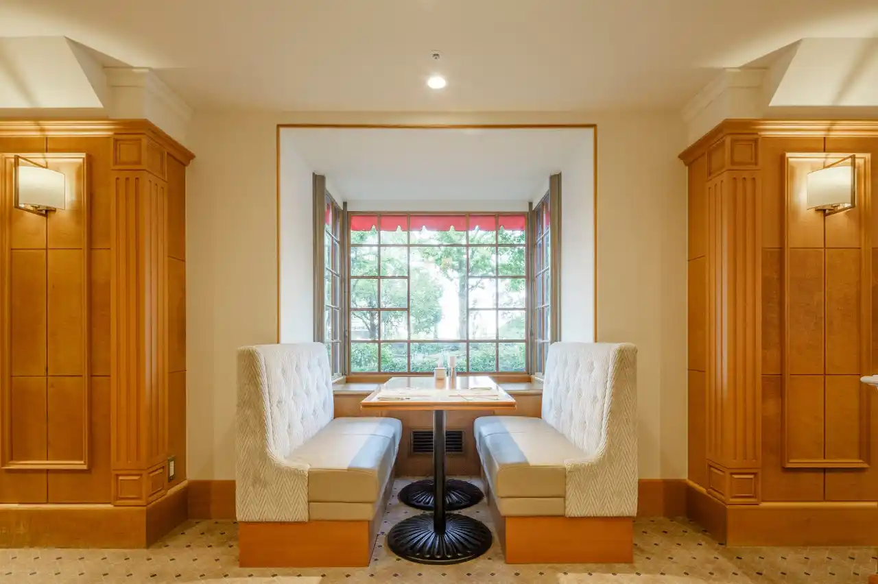 | 山下公園に面したカフェレストラン。ホテルニューグランド発祥の料理をはじめ、多彩な洋食メニューをお楽しみいただけます。木のぬくもりを大切にした、外光や新緑をたっぷりと感じられる明るく温かな店内で、ティータイムからお食事まで、幅広くご利用ください。 | |||||||||