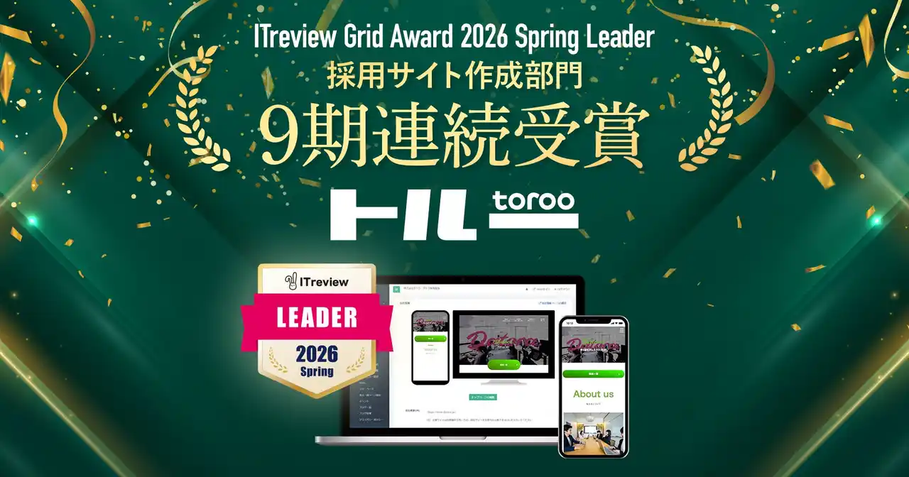 | 株式会社ダトラ(本社:大阪市中央区、代表取締役 草深悠介)が提供する採用管理システム「トルー」は、アイティクラウド株式会社(https://itcrowd.co.jp/)が主催するアワード「ITreview Grid Award 2026 Spring」の採用サイト作成部門において、認知度ならびにユーザー満足度の高いサービスに贈られる「Leader」を受賞したことをお知らせいたします。なお、今回の受賞で9期連続の「Leader」受賞となりました。 | |||