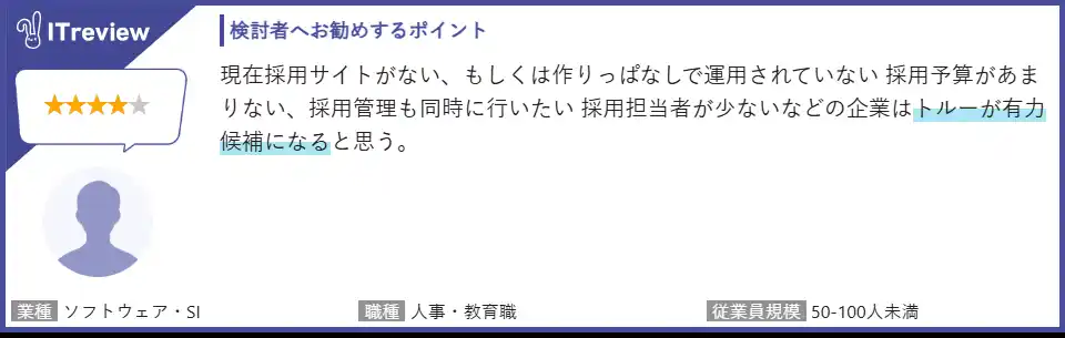 | ■「ITreview」に寄せられた「トルー」利用者の実際のレビュー(一部抜粋) | |||