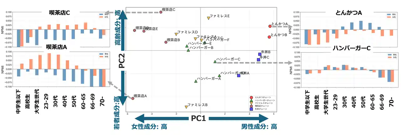 性別・年代別 NPMI ベクトルに対する 主成分分析(PCA) とチェーン店ごとの NPMI(※) |