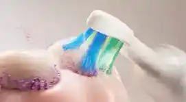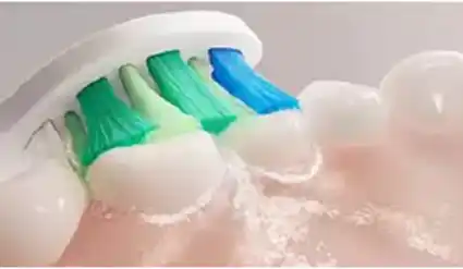 ソニッケアーの動きは毎分約31,000ストロークで、高速振動で歯垢をたたき浮かし、ブラシヘッドの幅広い振幅ではらい落とします。この動きが口の中の唾液の流れ「音波水流」を発生させ、やさしく、効果的に歯垢をかき出すサポートをします。 |