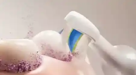 手磨きのように小刻みにブラシを動かす必要はありません。ソニッケアーは毎分約31,000ストロークで振動するので斜めに角度(45度目安)をつけて歯に軽くあて、2秒ごとに歯に沿ってなぞるように動かすだけ。 |