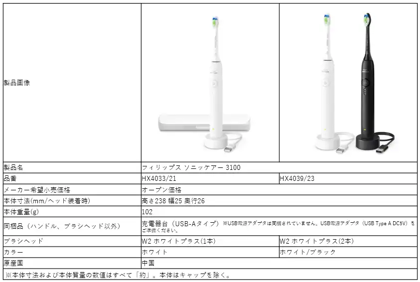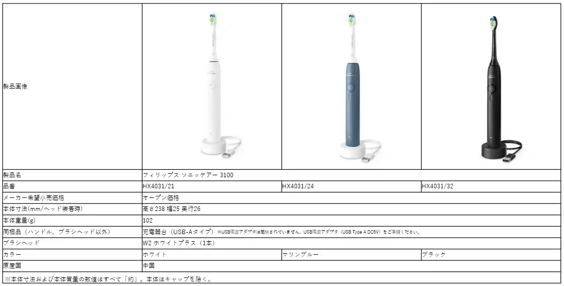 フィリップス ソニッケアー 3100 製品仕様 |