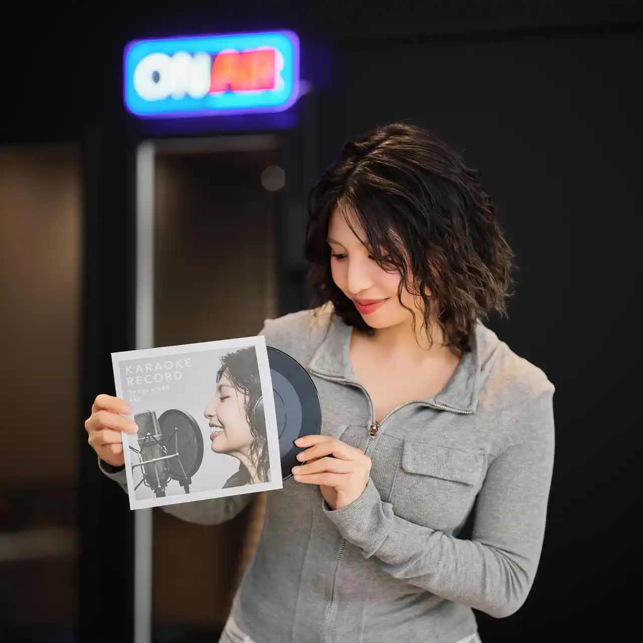 レコーディングスタジオのような空間で、J-POP や アニメソング などの人気楽曲から好きな楽曲を選び、アーティストになった気分で歌うことができるのが特徴だ。ゲストの日本語が曖昧でも、母国語で歌っても、最新のデジタルマスタリング技術で、歌声はそのままで日本語の歌詞に変換して録音される。音程も正確なピッチに補正されるため、完成した音源はプロシンガーのような仕上がりになる。この音源は体験シーンのレコードジャケットとともに持ち帰ることが可能。 |