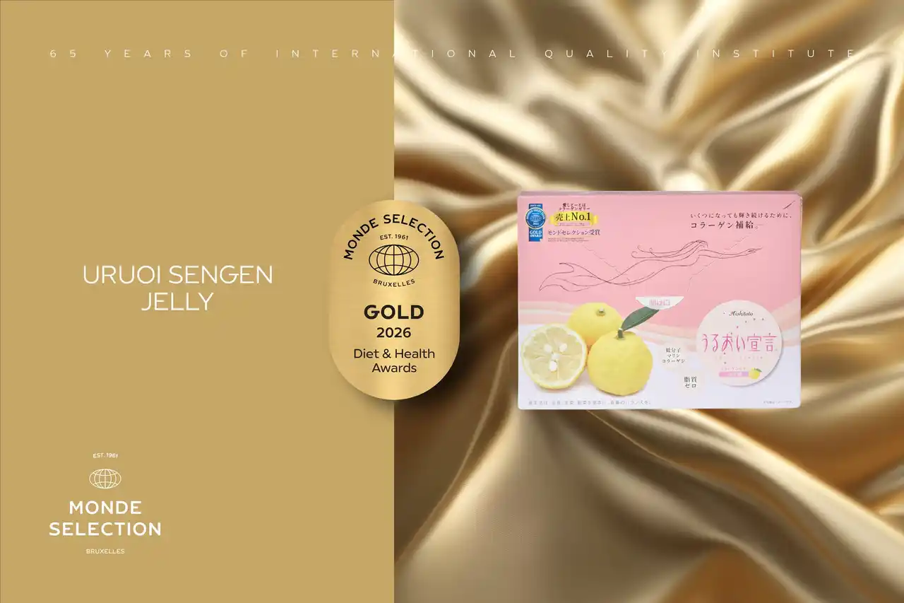 マリンコラーゲンを配合し「おいしく食べながら手軽にコラーゲンを補給できる愛しとーとの定番美容系ゼリー」として多くのお客様にご愛顧頂いております「うるおい宣言」が、その確かな品質を世界に認められ、20年という長期にわたる連続受賞、そして19年連続での金賞受賞となりました。 |