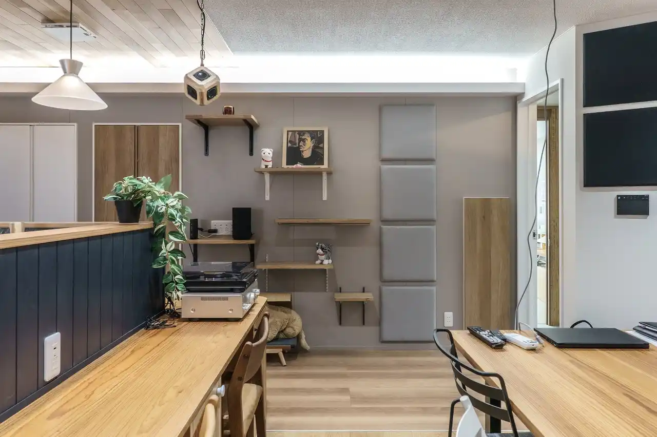 | 吸音材の実物による防音体験、天吊りスクリーンを使ったホームシアター提案、ネコステップなどのペット共生設計、フットマッサージ・マッサージチェアを置いたくつろぎスペースまで、家造りにまつわる多様な課題を一箇所でヒアリング・提案できる体制を整えています。壁材・床材の実物サンプルも多数展示しています。 | ||||||||||||||||||||||