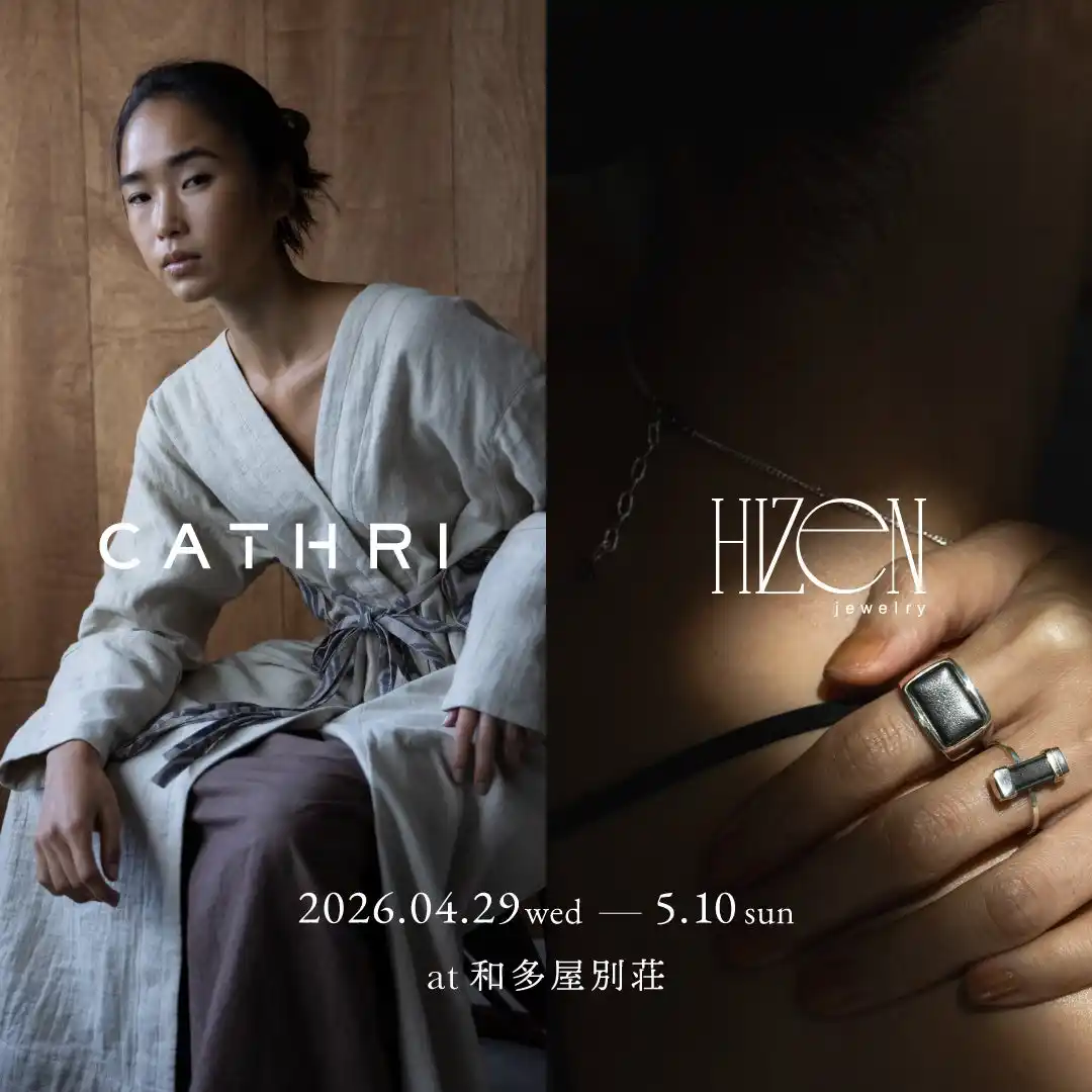 | 株式会社 和多屋別荘(所在地:佐賀県嬉野市)は、2026年4月29日(水・祝)から5月10日(日)までの期間、館内にて〈CATHRI〉〈HIZEN jewelry〉のPOP UPを開催いたします。 | ||||||||||||||